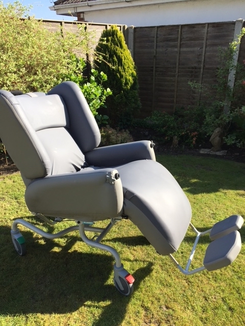 Specialised Chair/Bed. Suitable for people in nursing homes or hospitals or caring at home as it is hoist accessible, easy to push around and easy to clean.