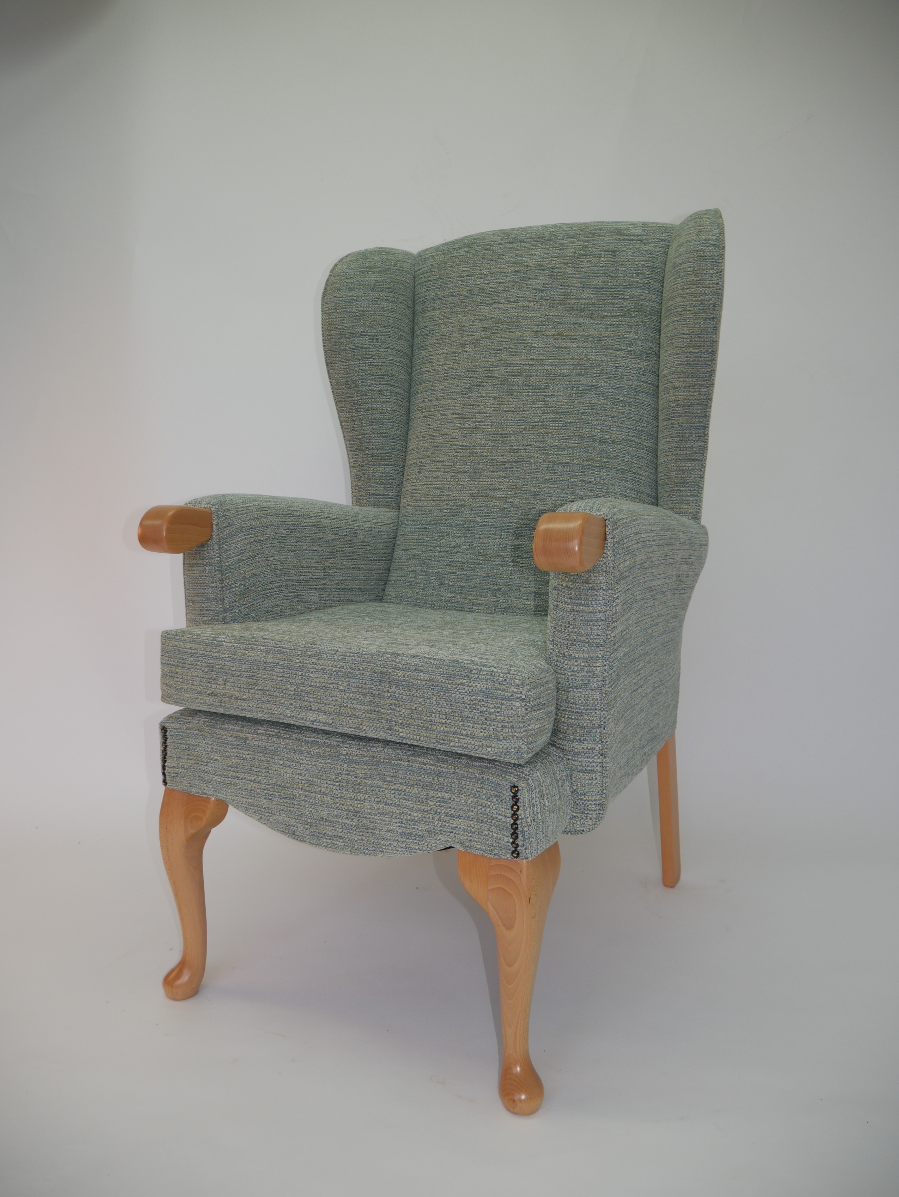 Quality Orthopeadic high seat chair, solid hardwood frame and upholstered Ross fabrics.