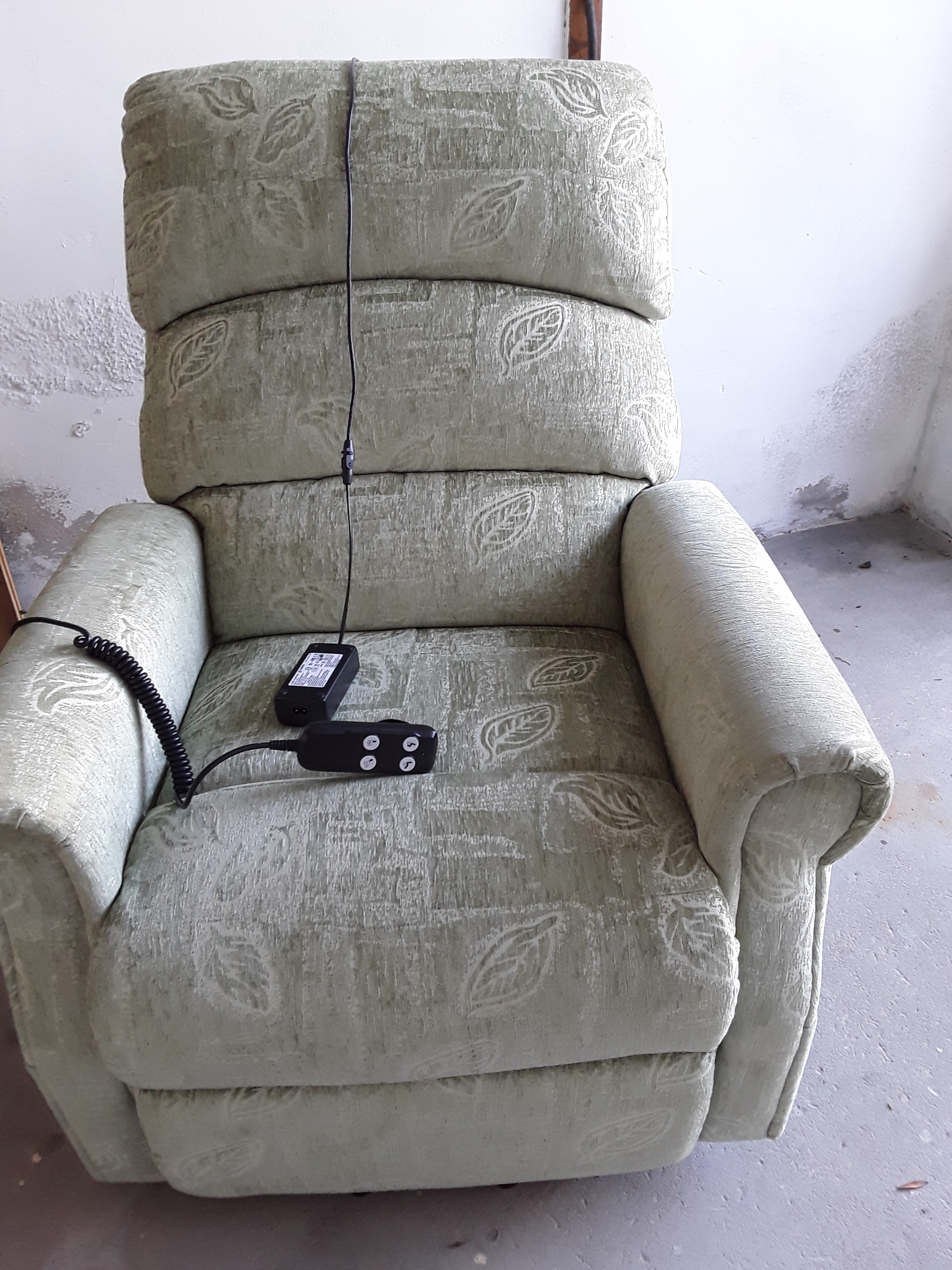Green upholstered rise and recline chair 6 months old as new from non smoking environment |