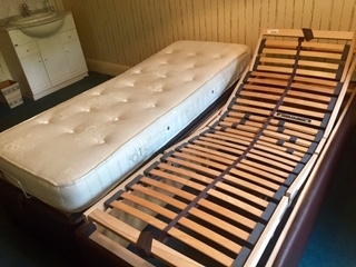 Mattress Pocket Sprung with Damask Cover. The 2 Beds can be separated and the head and foot movements are independently controlled by hand- held remotes. Guaranteed until March 2021. Condition as good as new.