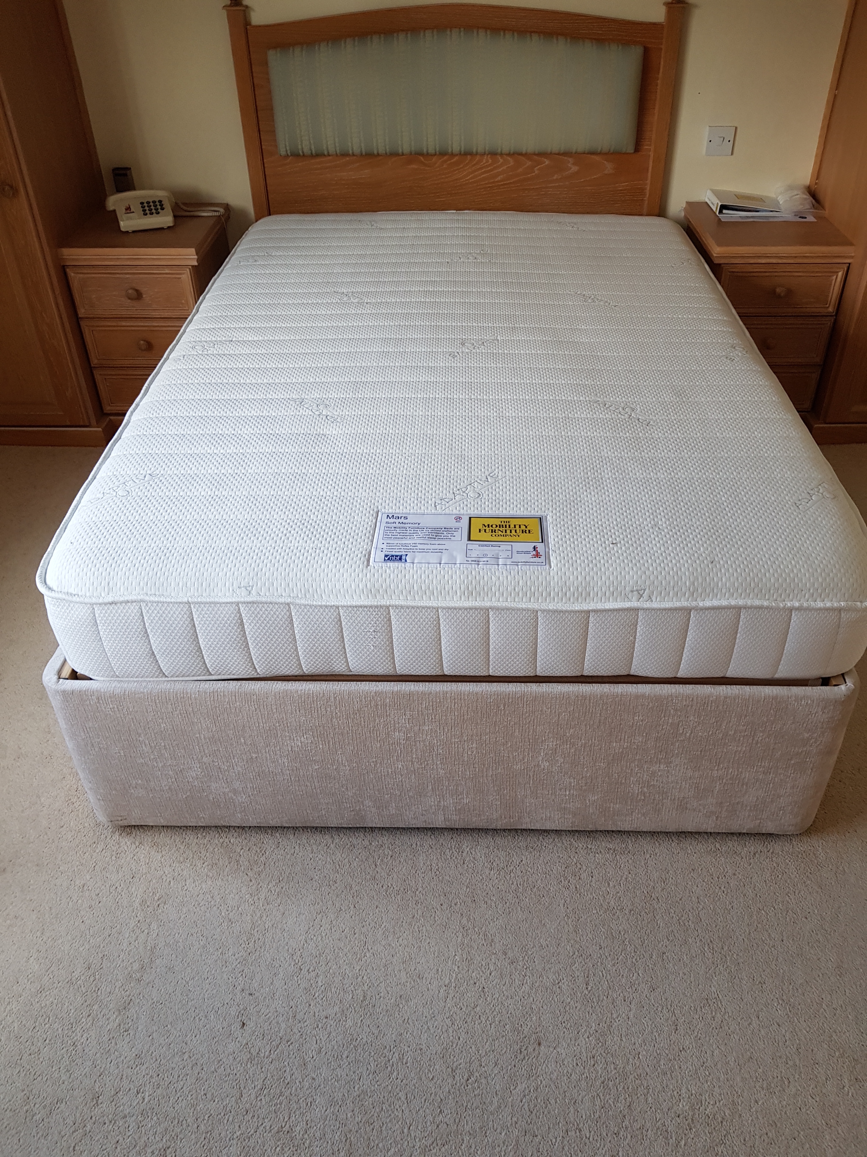 Double bed with memory foam mattress and two drawers in divan base. Lovely condition. Cost over £3,000 new. Buyer to collect from Bookham, Surrey. (Headboard not included) |