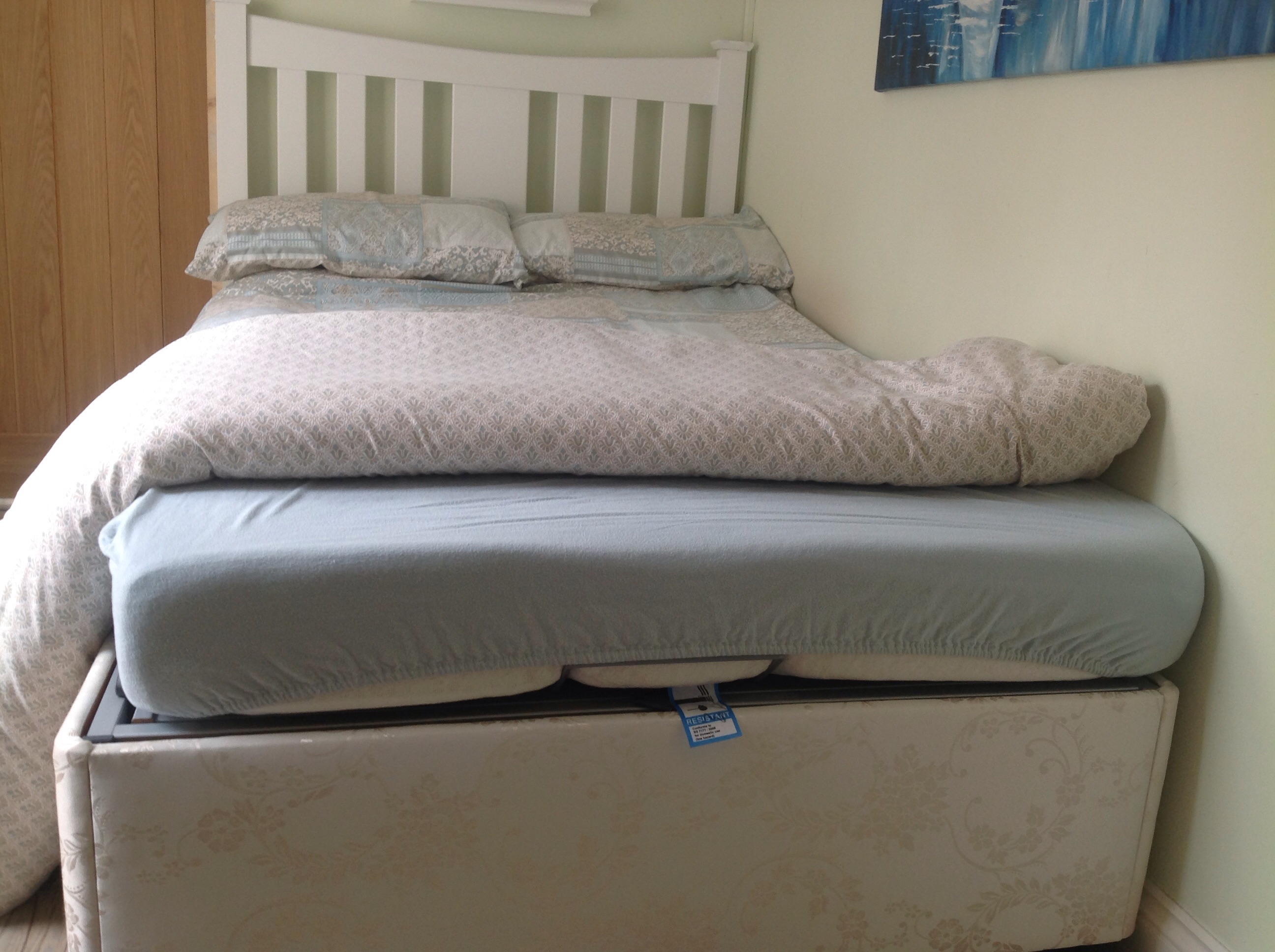 Attractive 4ft double divan profile bed. Special order heavy duty frame to accommodate two adults. Reflex foam mattress. Originally ordered due to the fact that it does not look like a profiling bed. 5 settings available. Original invoice available to view. Original cost £1300 from Laybrook Ltd. |