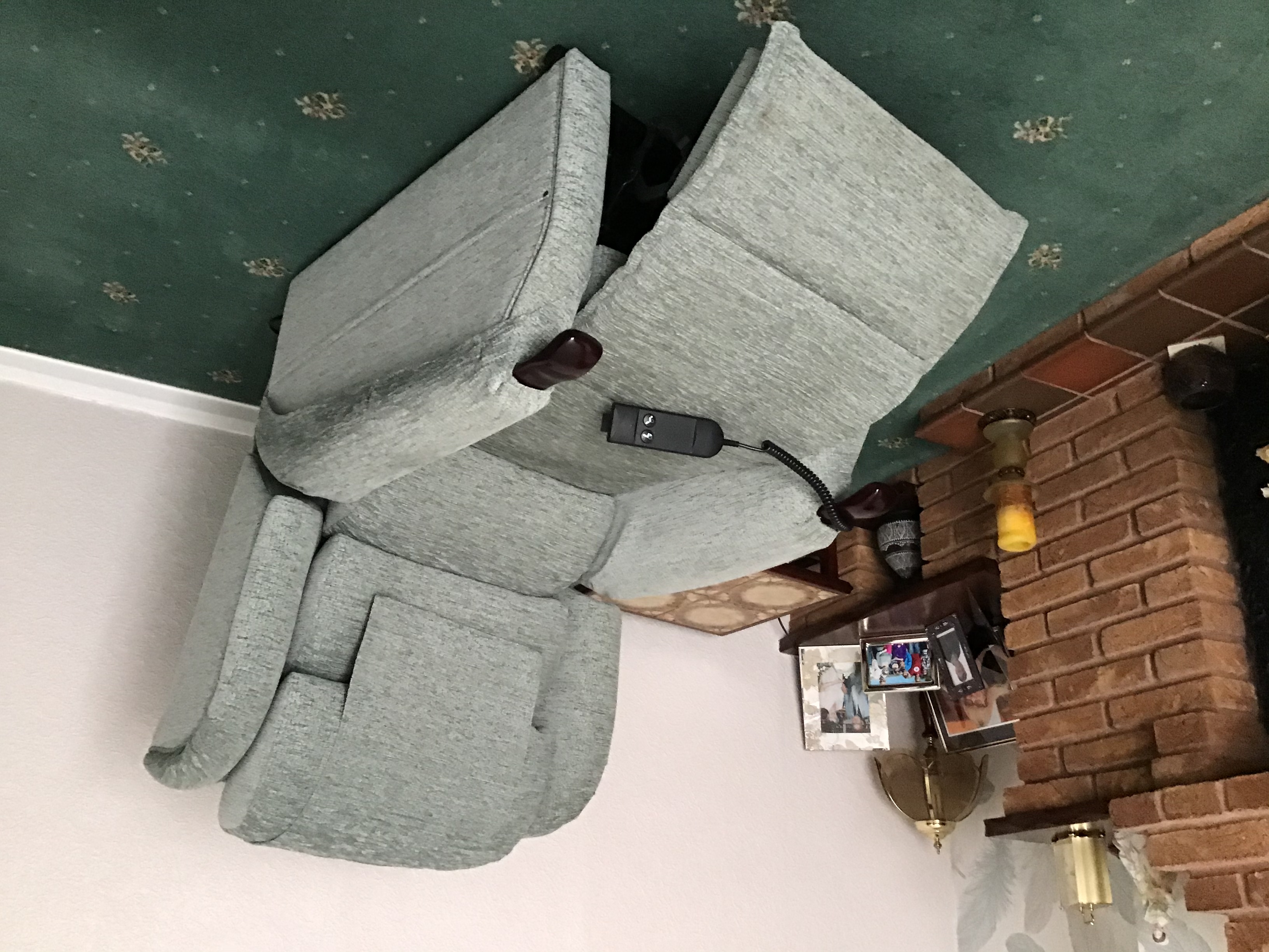 Virtually new 3 piece suite, 2 electric chairs recline and rise and a 2 seater settee .....brought new for £4,500 and used for a maximum of 3 months ......looks as new .....with back head rest covers and dark wood ends of arms ....