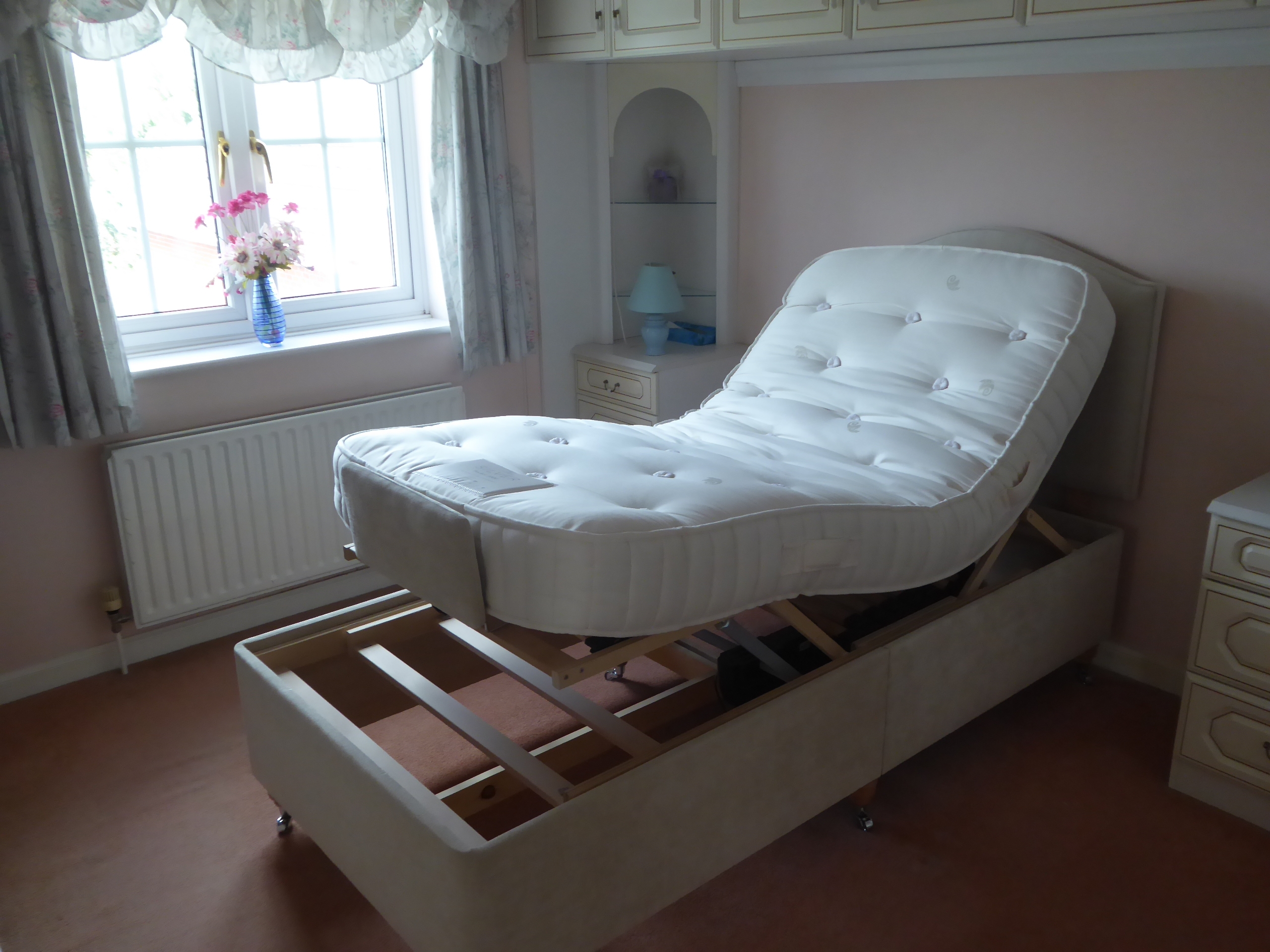 HSL 3ft Raise & Rise electric operated custom built Bed Sherlock Pearl Fabric Trim.