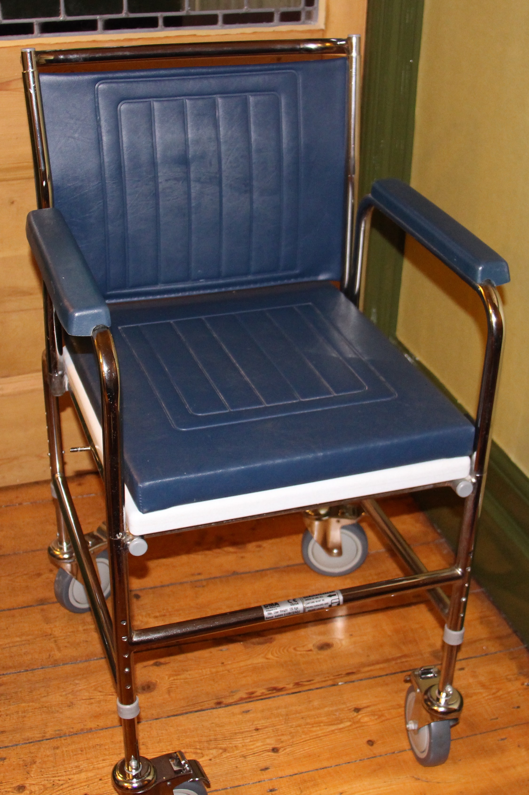 This fully height adjustable commode comes with a blue cover and arm pads. The arm supports can be removed and the height adjusted to fit in almost any location. All wheels have brakes. The commode was made in the UK by Days Medical Aids. It has hardly been used and is in very good condition. |
