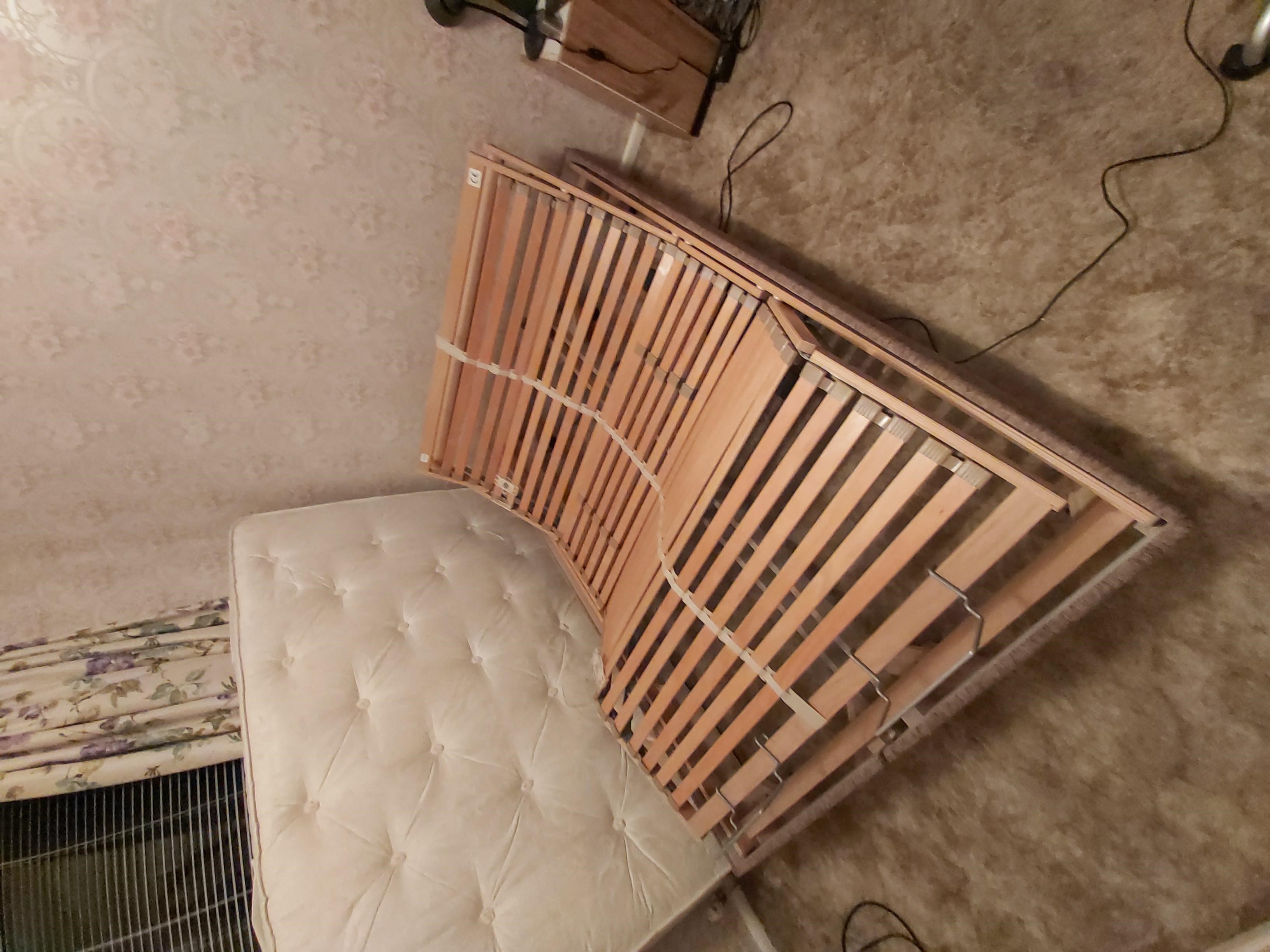 Nearly new electric double bed with integral remote control and high quality Relax Powermatic mattress.
