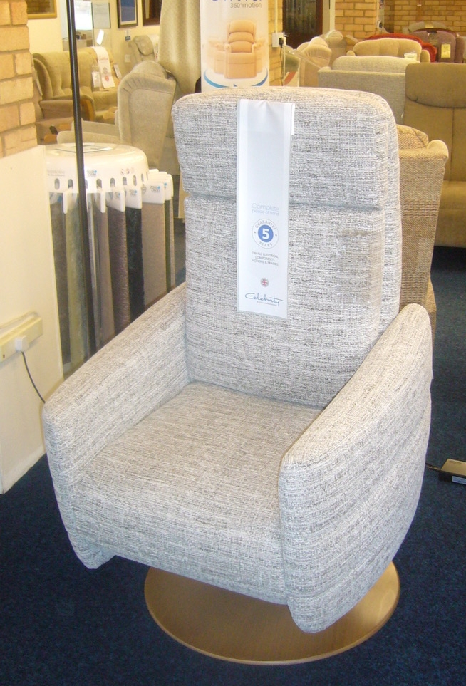 A stylish, comfortable chair with curved supportive arms and stitching detail. Dual motor recliner action allows you to operate footrest and backrest independently. Light oak base. Stain treatment and accidental damage insurance - can be transferred. As new; never used - cost £1250; colour pale grey; L x W x H; 1600 (when extended), 750, 1120mm. May be able to deliver without charge. |