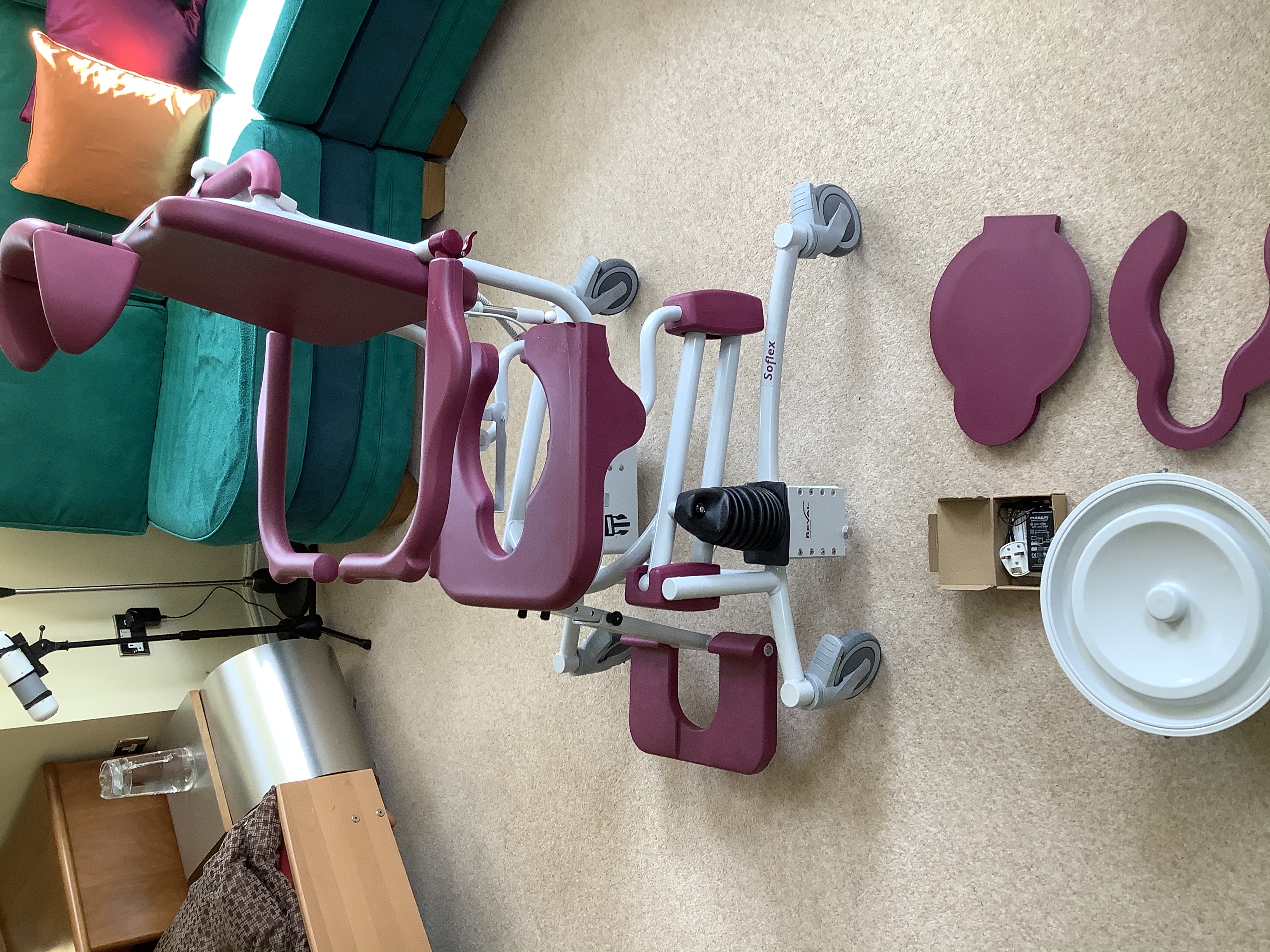 OVNO The versatile Soflex is a height adjustable commode and shower chair that makes hygiene procedures safe and comfortable for both patients and caregivers. Its integrated tilt system assists posture management during patient transfers and its high-low function allows easy access for routines such as toileting, showering and hair washing.