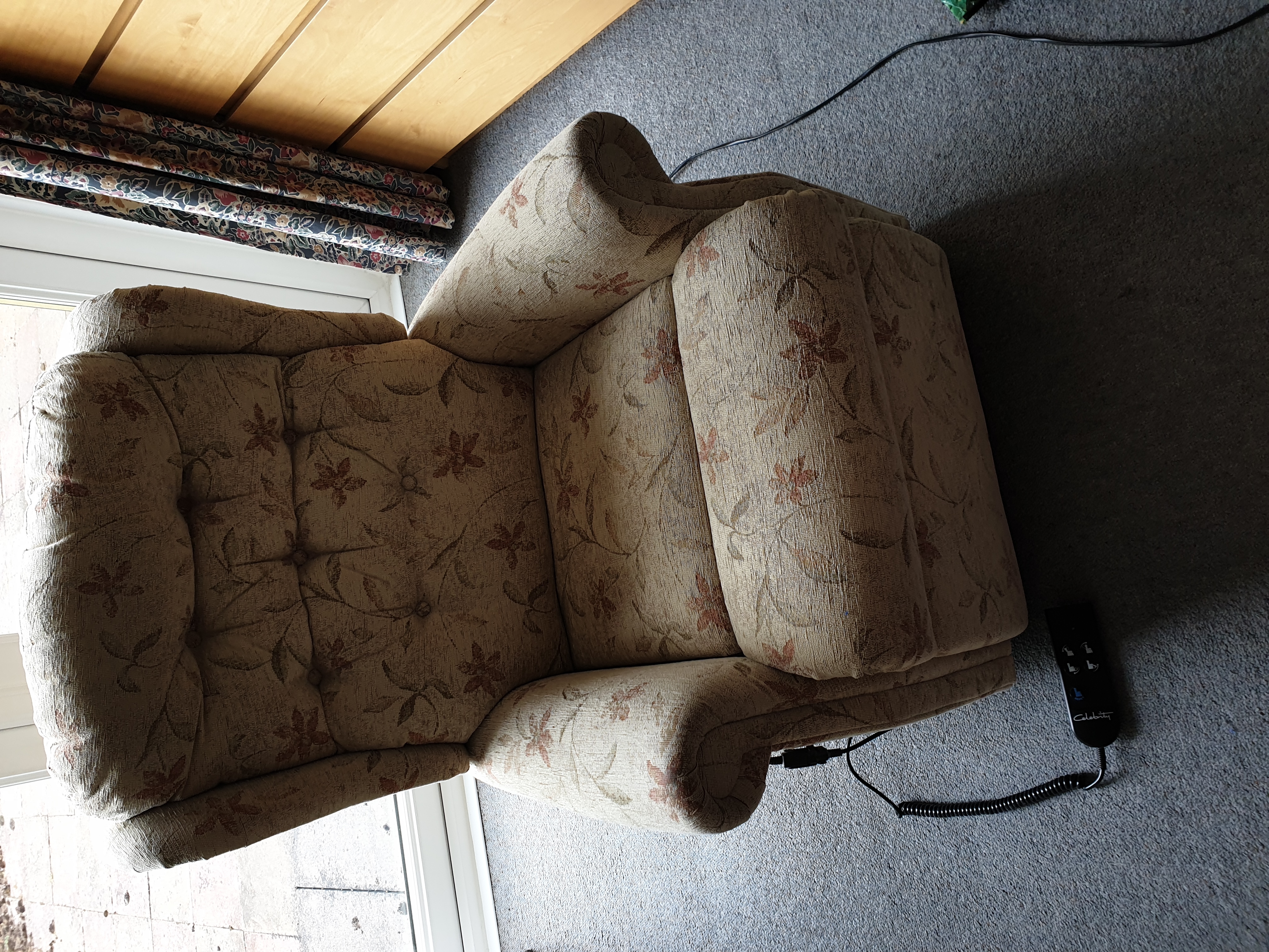 fully working electric celebrity dual control recliner chair. Medium in size and material beige