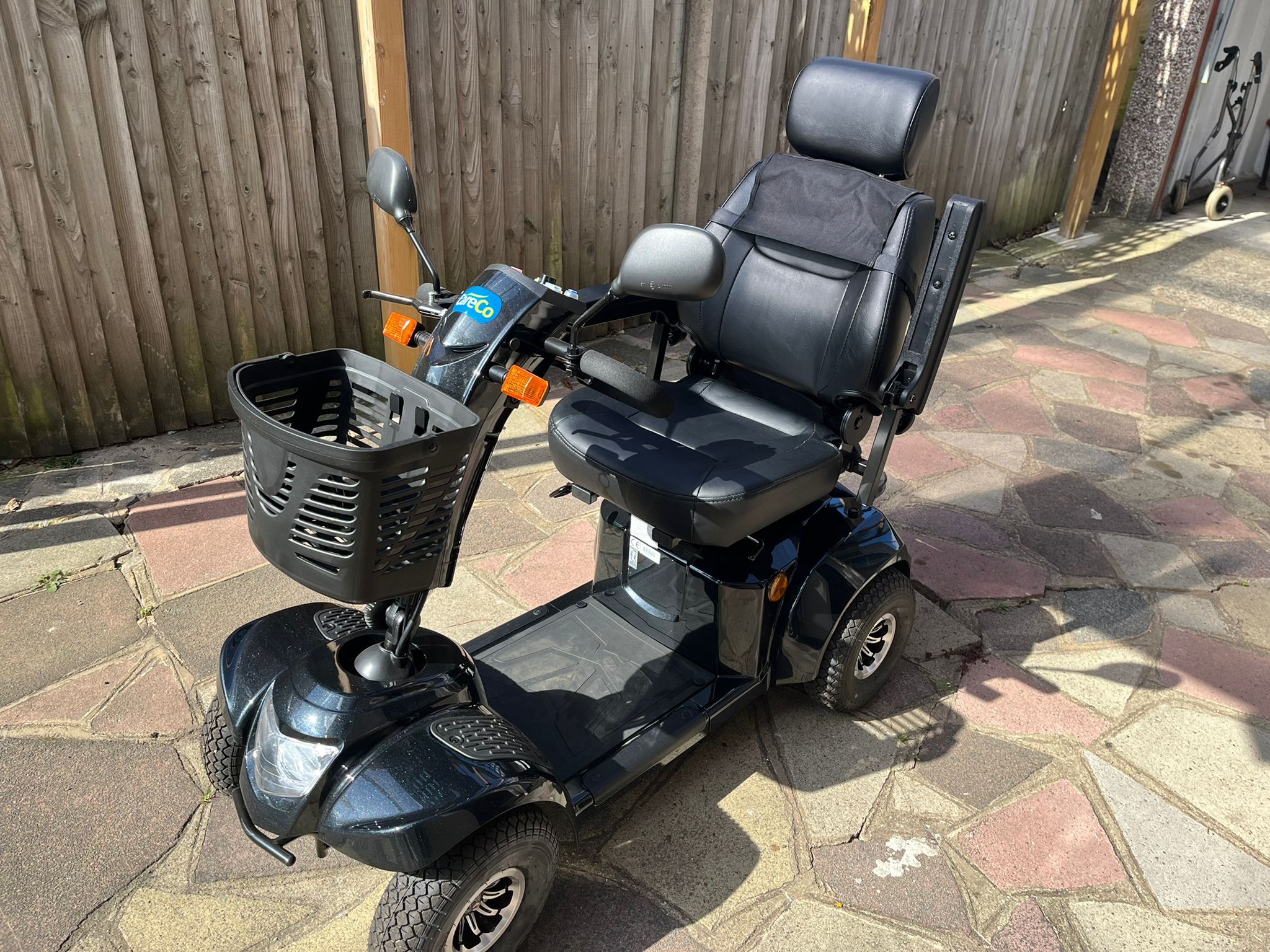 Brand new black Daytona CareCo mobility scooter. Spotless condition, never used. Gel insert tyres. Comes with panel and seat covers and bespoke carry bags. 30 mile range, 8mph |