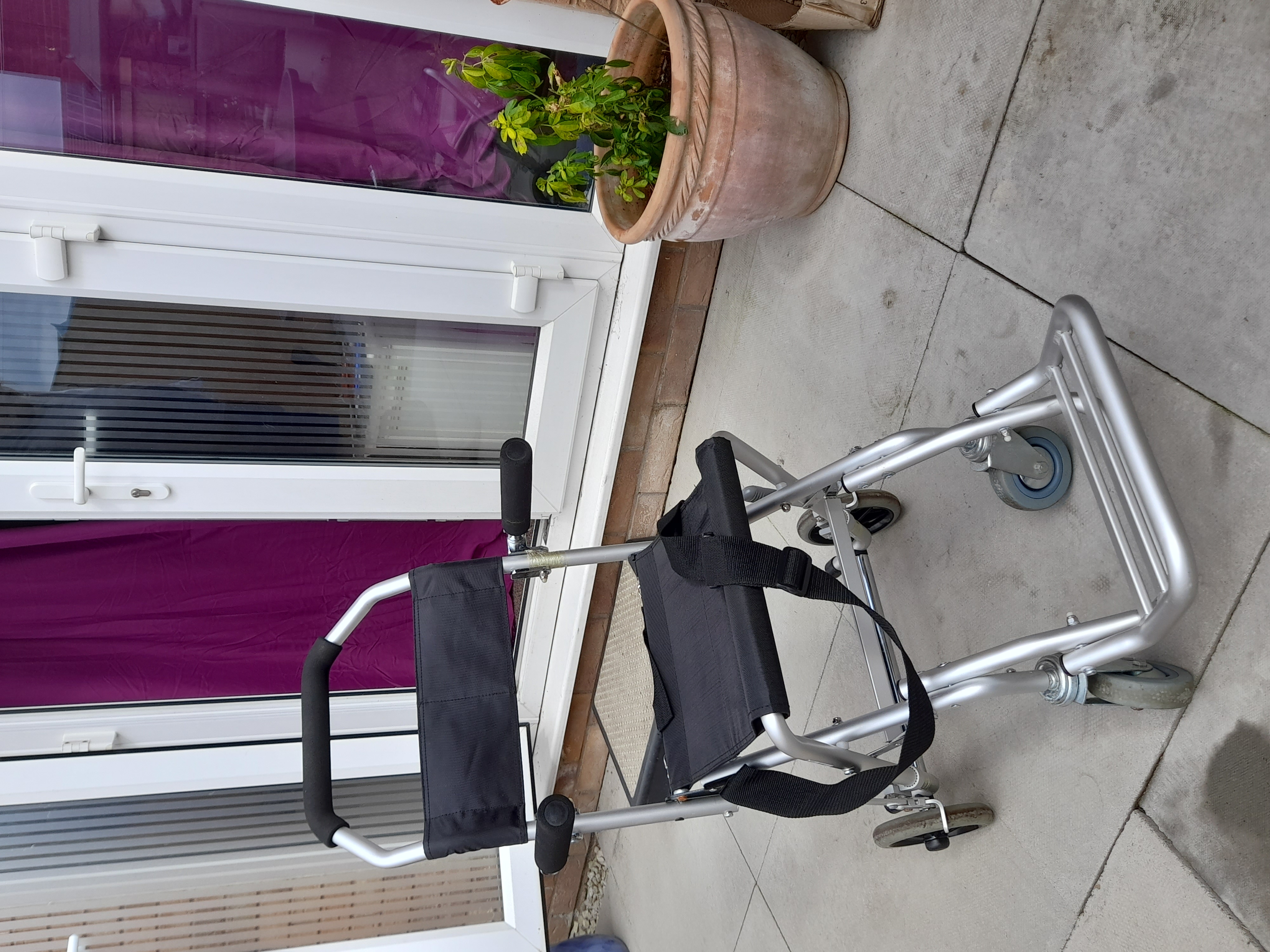 Folding travel wheelchair. With safety belt and carry case. Excellent for travelling. Like new, never used. |