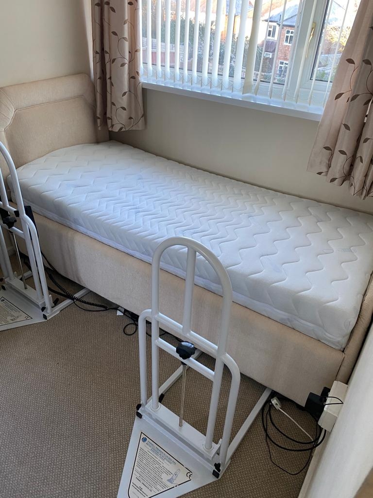 This is a hardly used Oysterwood collection adjustable bed with luxury memory foam mattress and 2 side rails.This bed has cleverly engineered motors which help with getting in and out of bed more easily.It also has a massage system which has a choice of either a full body or specific area massage designed to help with aches and pains. Collection only from Leicester LE5 5NT. call me on 07946316792 or 07939941832 |
