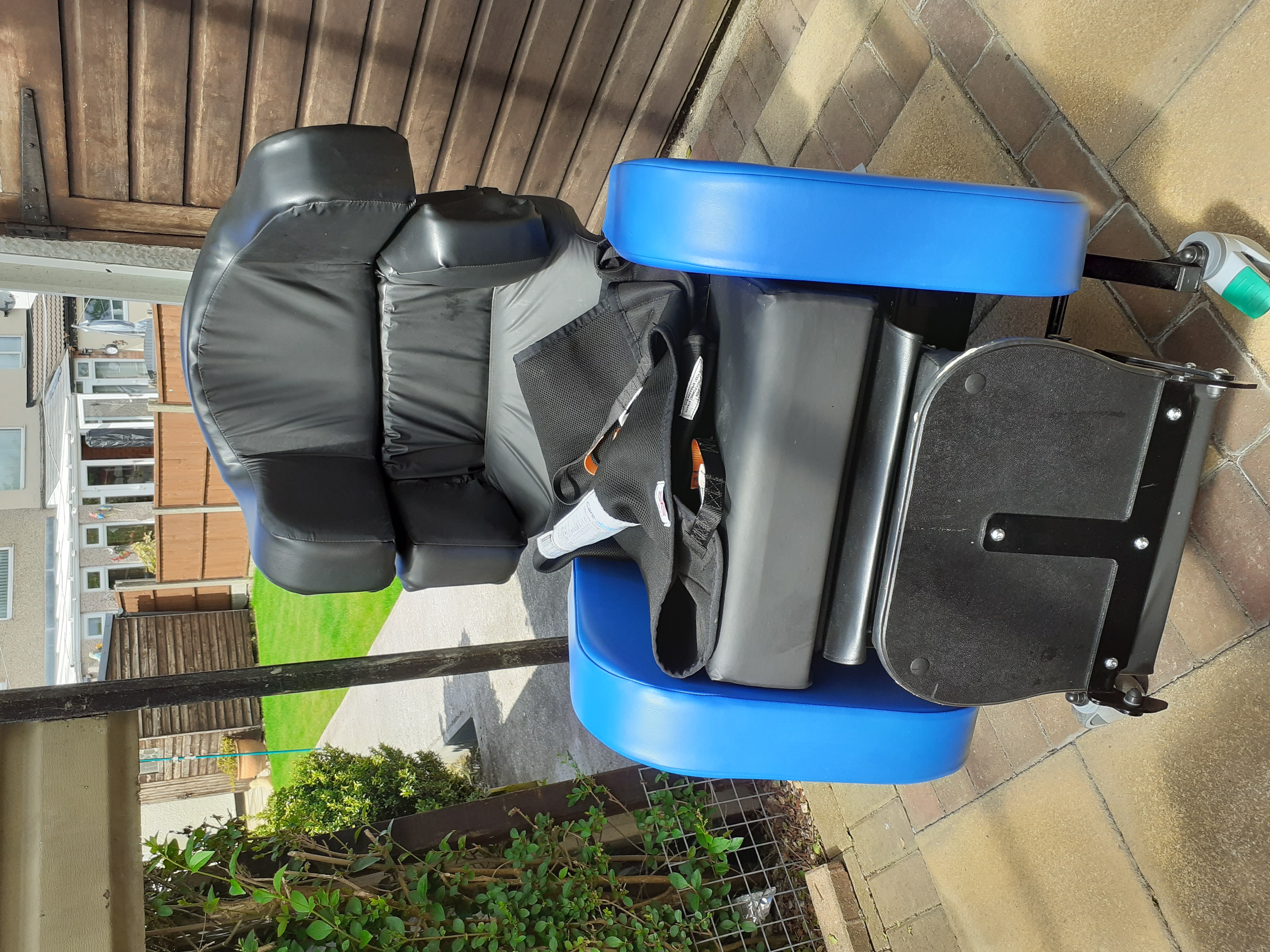 Adjustable tilt in space seating, complemented with height adjustable back rest,flexible head rest providing correct head positioning and maximum support, tilt back angle and contoured back. For people who require support, pressure care and comfort. Adjustable settings remote control with battery and charger comes with hoist slings. Has slight damage to underneath foot rest, only used for 6 months cost £2,570 new |