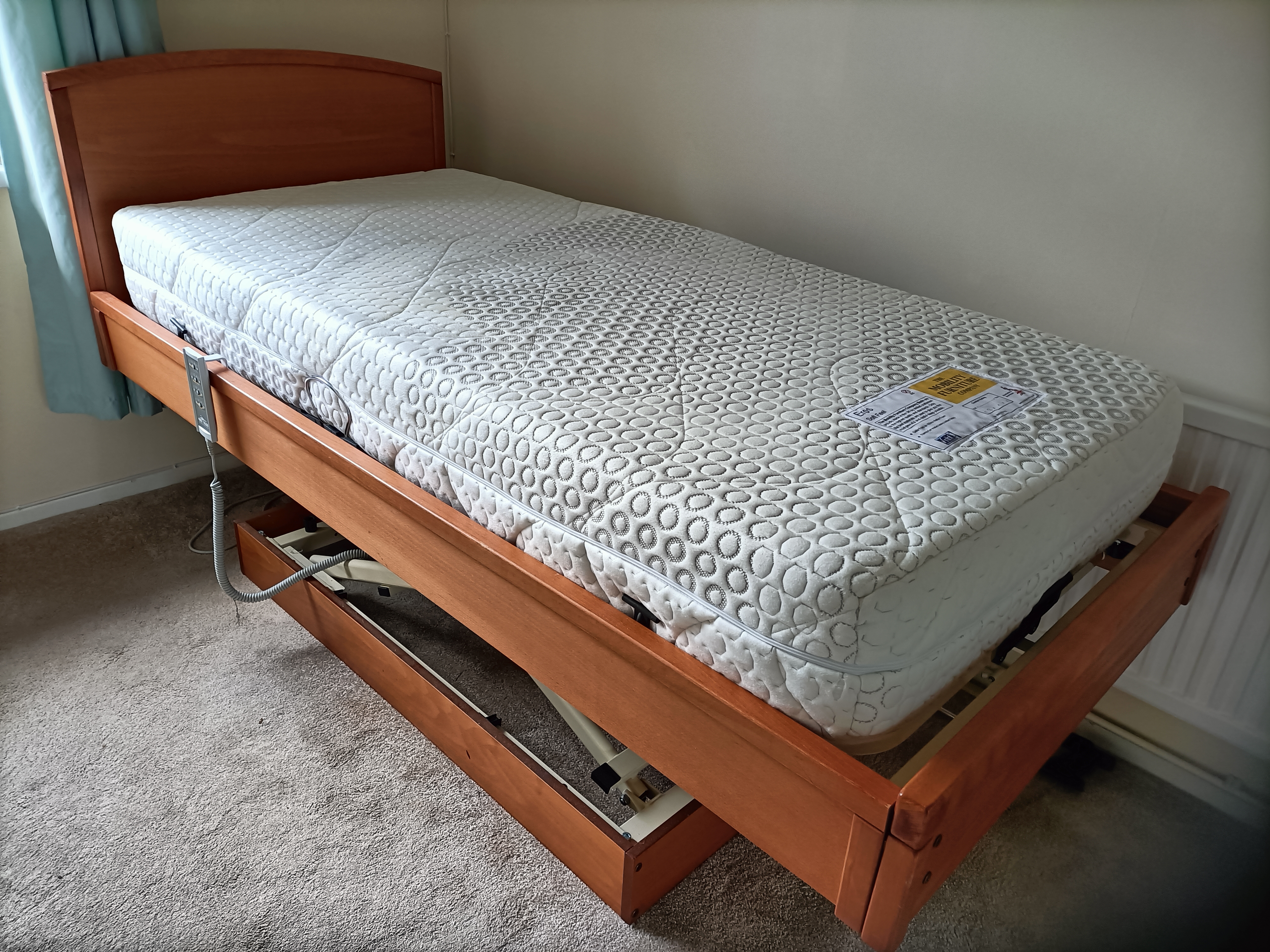Electric single mobility bed for sale. The make is Home Care, model Clevedon.It is Steel framed with headboard and mattress. The bed is in very good condition, used for less than a year, it has remote control, fully adjustable height, multiple positions, electric back rest and foot board.Due to the steel frame the bed is heavy and would need to be collected. |