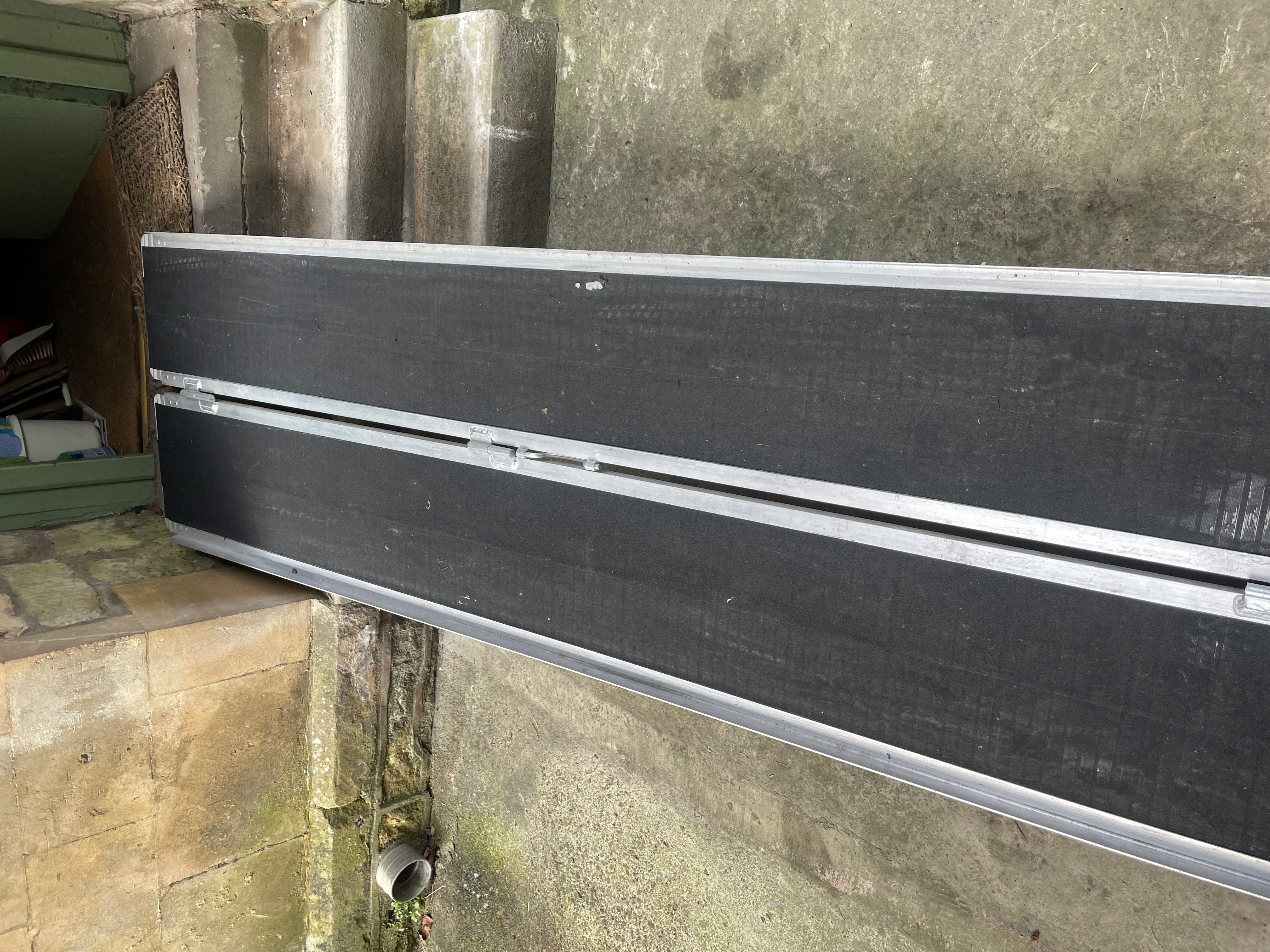 Eight foot long aluminium wheelchair ramp. Have put anti slip material on surface for better traction. See image |