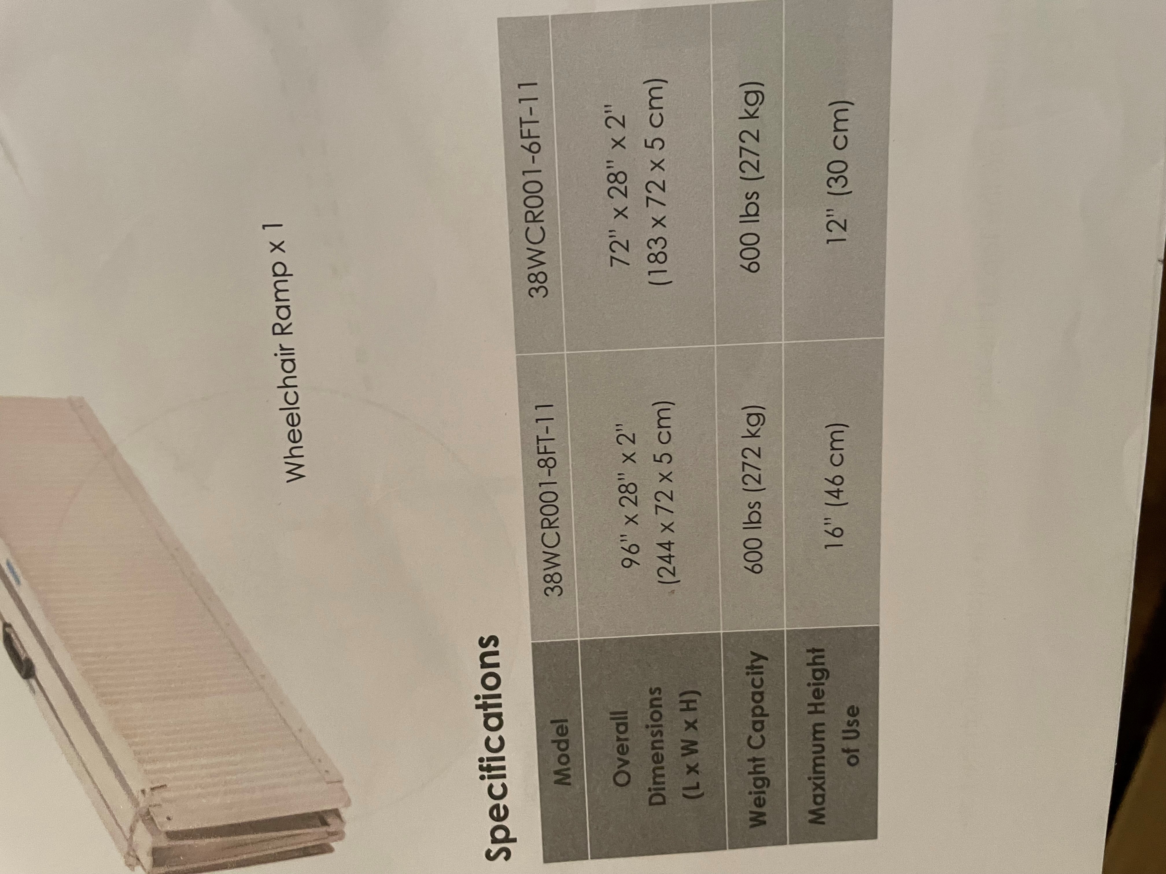 This is still boxed and was bought in error. We have the other used ramp for sale in this section.The specifications photo is for the 8ft model. hope that helps |