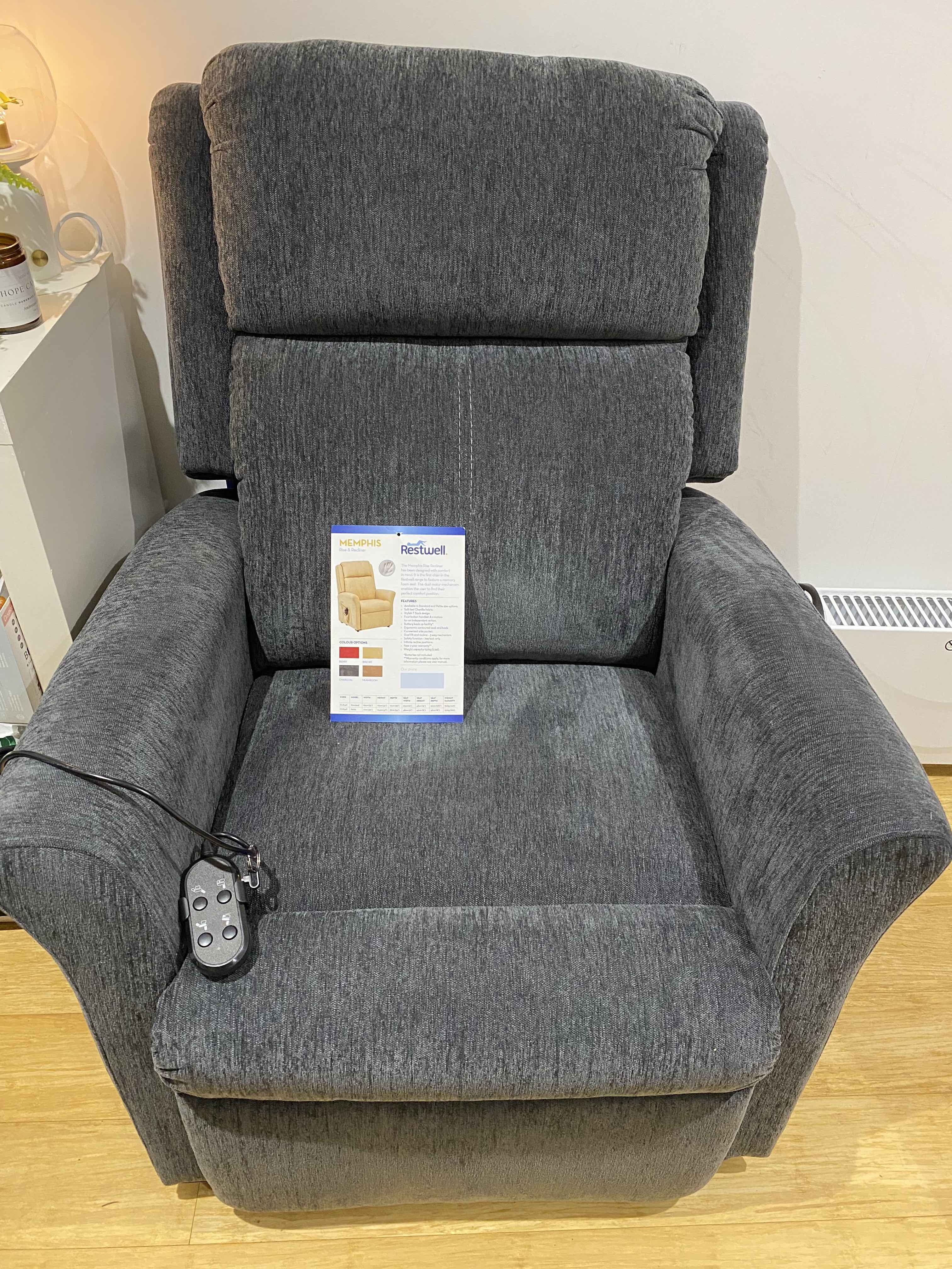 Petite charcoal riser recliner dual motor electric chair. Purchased in December so under warranty - occasional use since so as new and fantastic condition. Petite so suits smaller person.