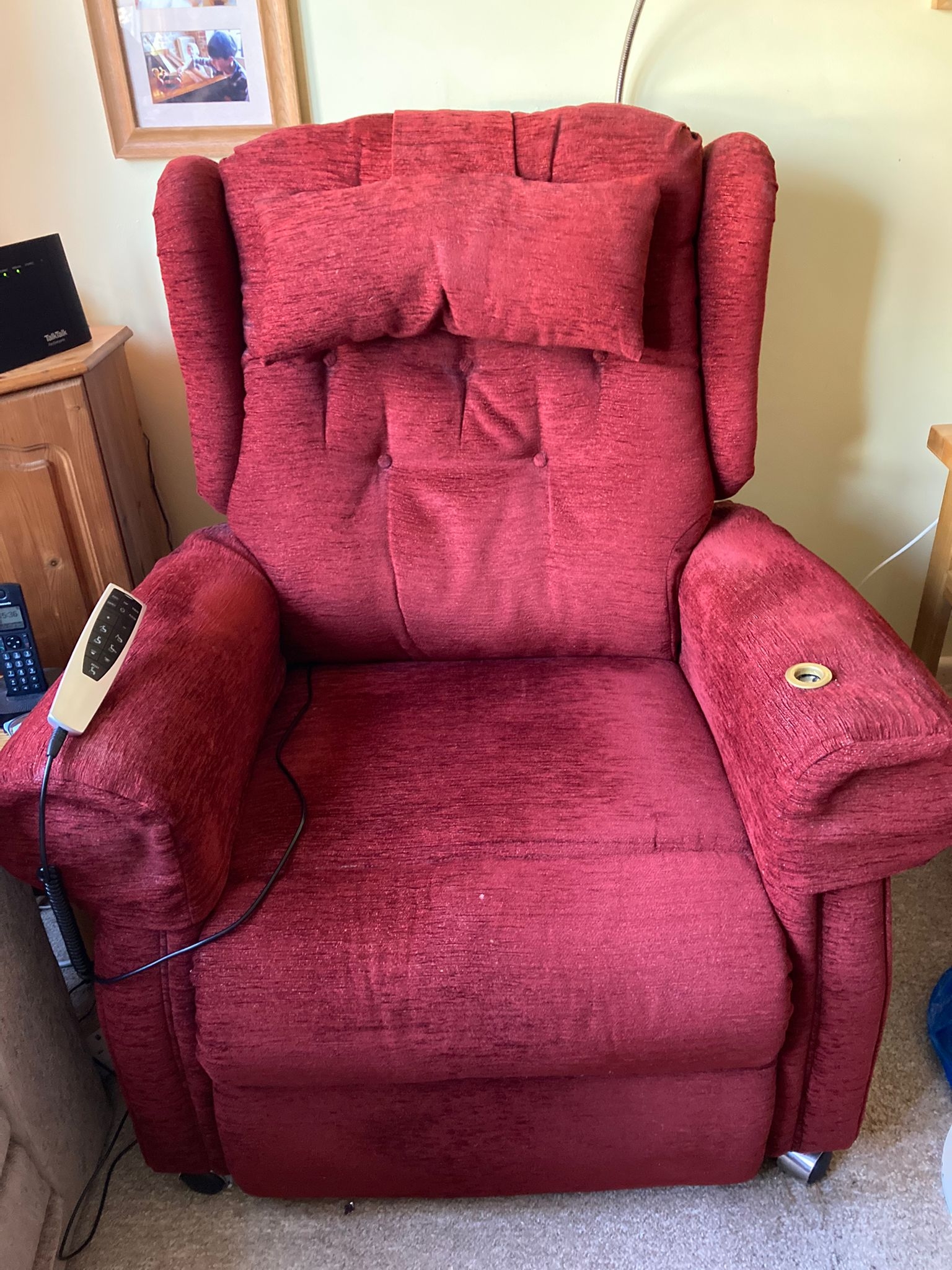 Large riser recliner chair bespoke cost 4000 pounds new. Has built in massage system and charging dock. Comes from smoke and pet free home |