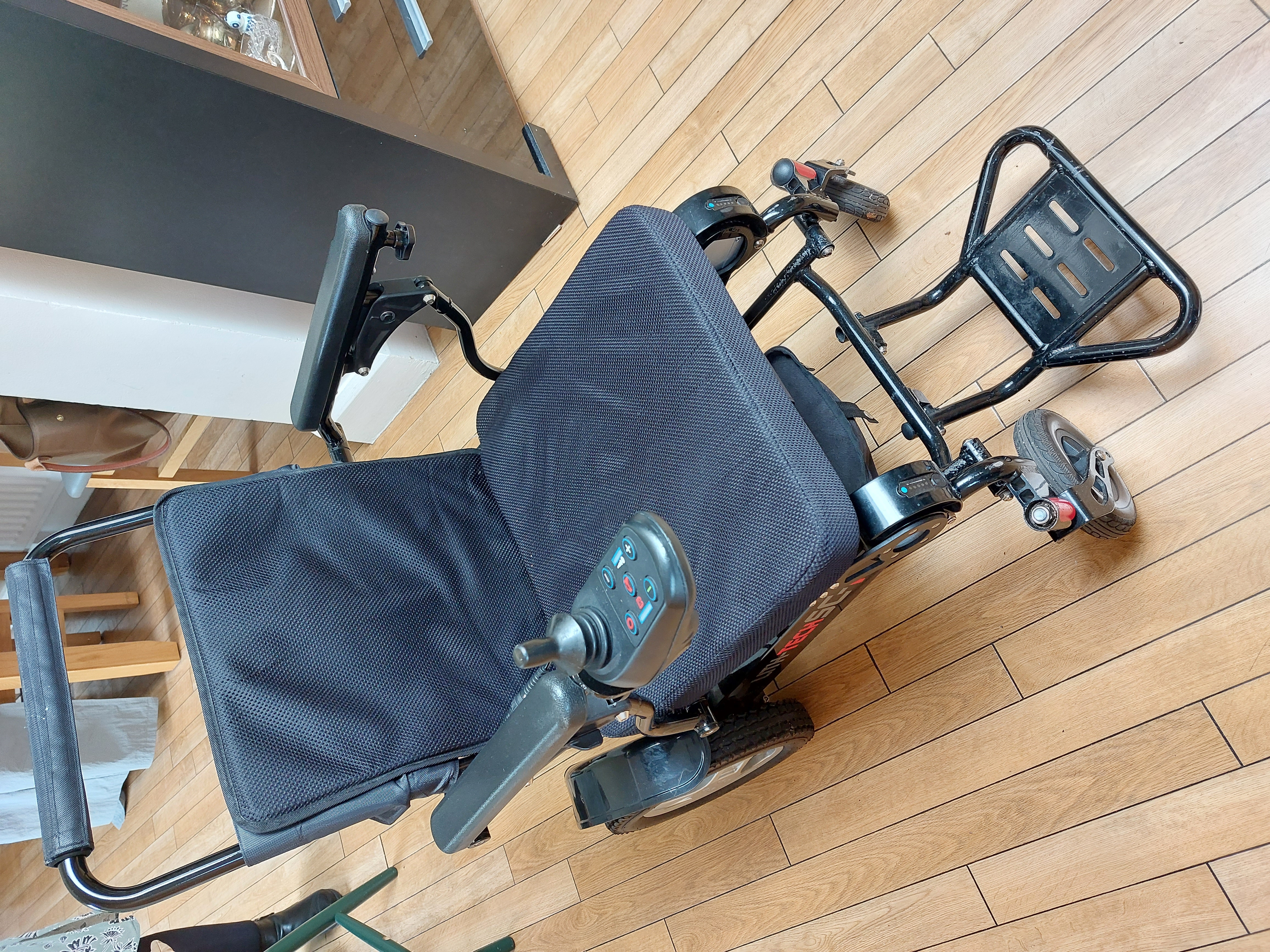 3 year old lithium battery powered adult wheelchair. Joystick control. Collapses flat for storage and battery can be removed and taken as hand luggage for air travel. Very comfortable. Only needs charged once per week on average. Easy to manoeuvre with front swivel wheels. Good condition. |