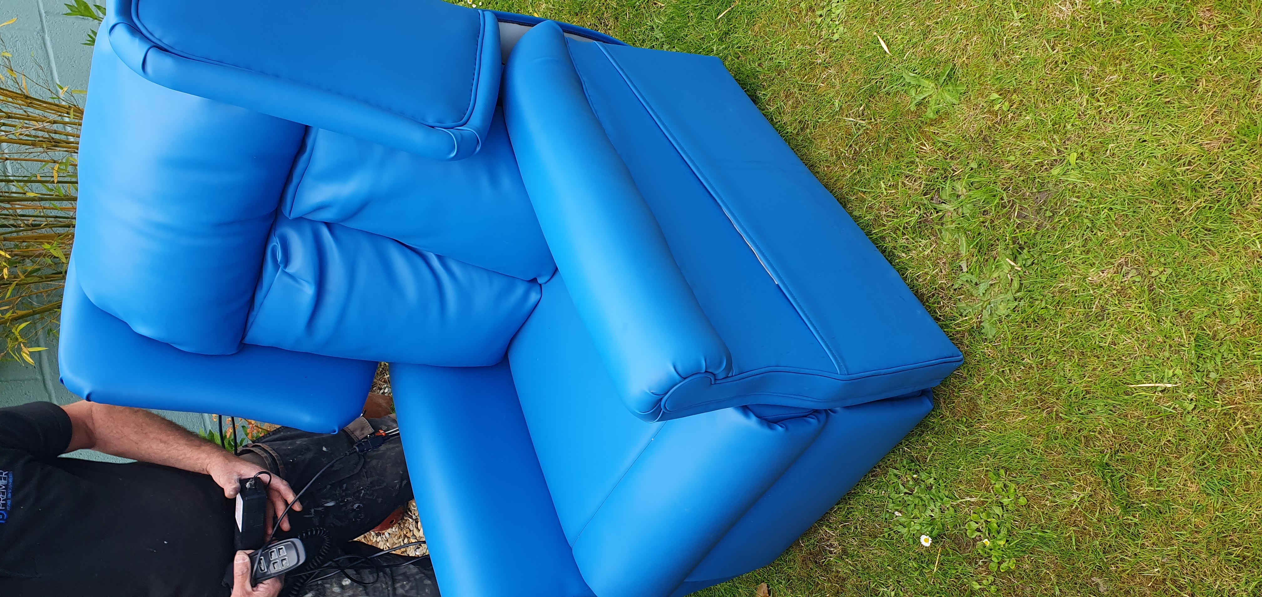 mobility chair armchair electric rise, and recline in a waterproof fabric.