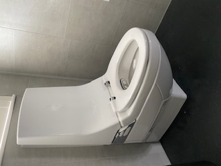 Wash and dry remote control toilet with a wide range of adaptable functions including heat, shower, spray intensity, drying etc. heavy duty seat for access from hoist or chair.