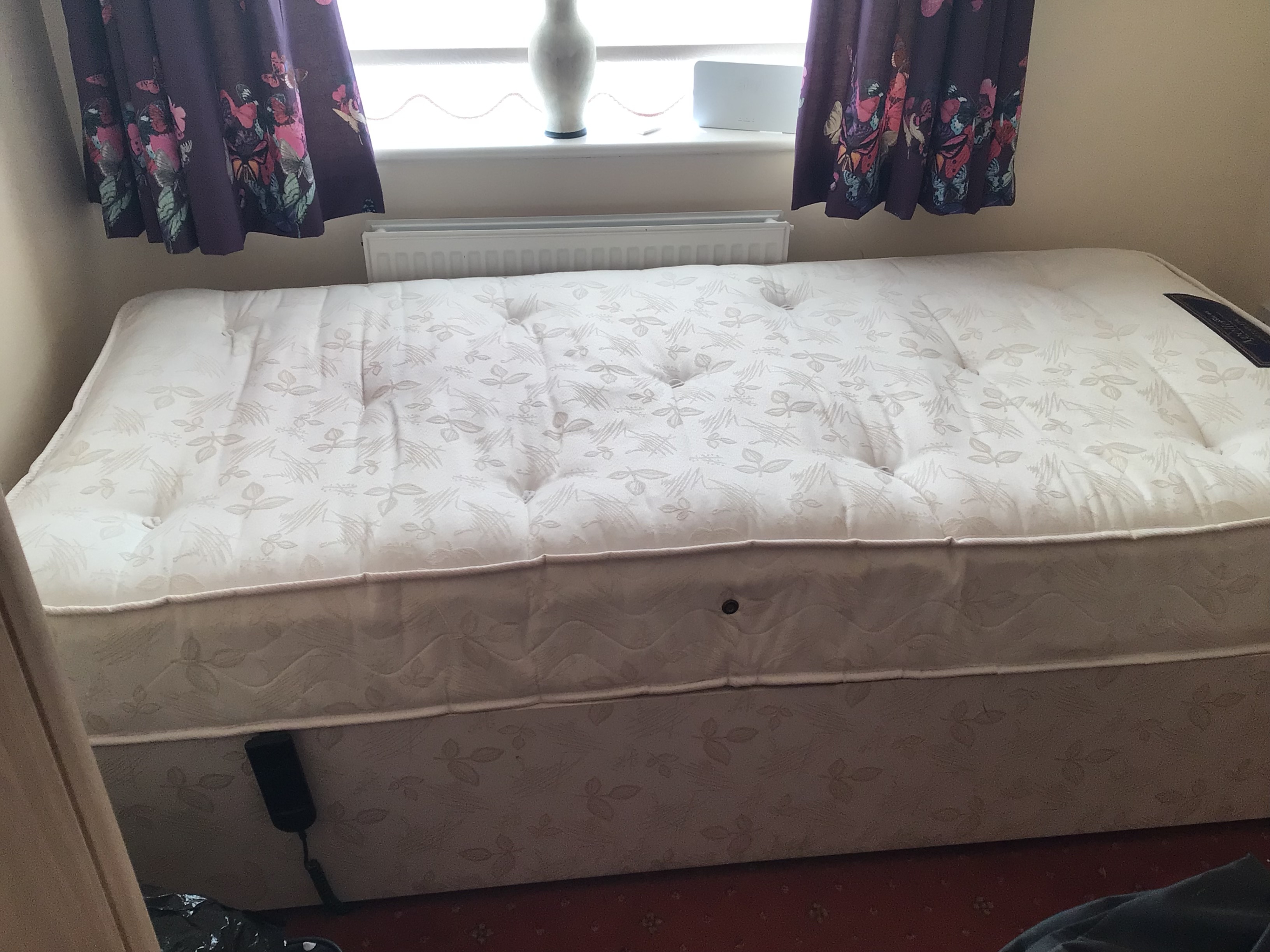 This single bed is an electric 5 position divan bed. It comes with a remote control. It is in excellent working order. Buyer must collect. |