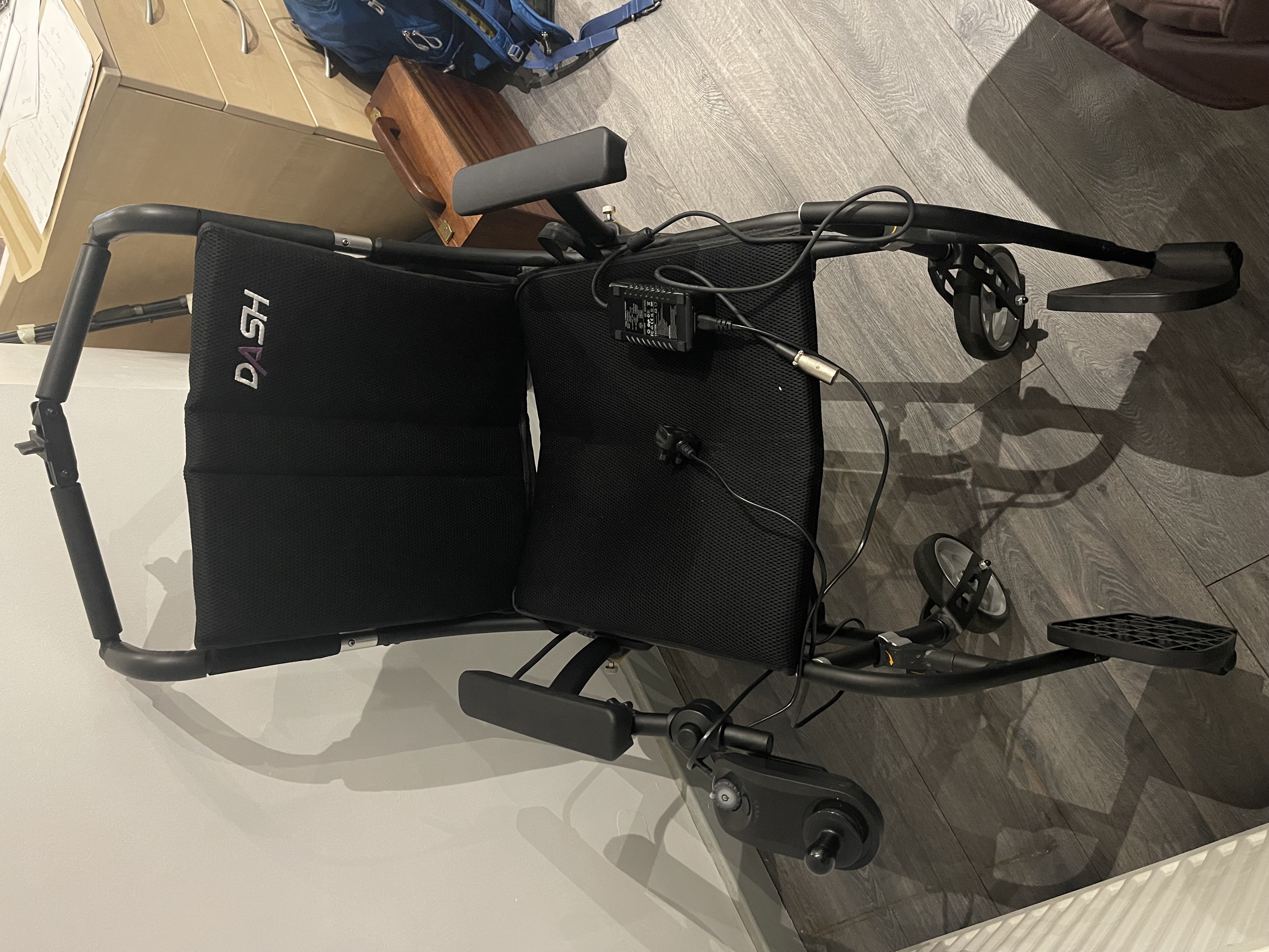 Dashi MG Power Chair lightweight and portable. Used only minimally 2 miles max. 4 Months old like new condition. Paid £2500 in sept 23. receipt available and more pics if needed. |