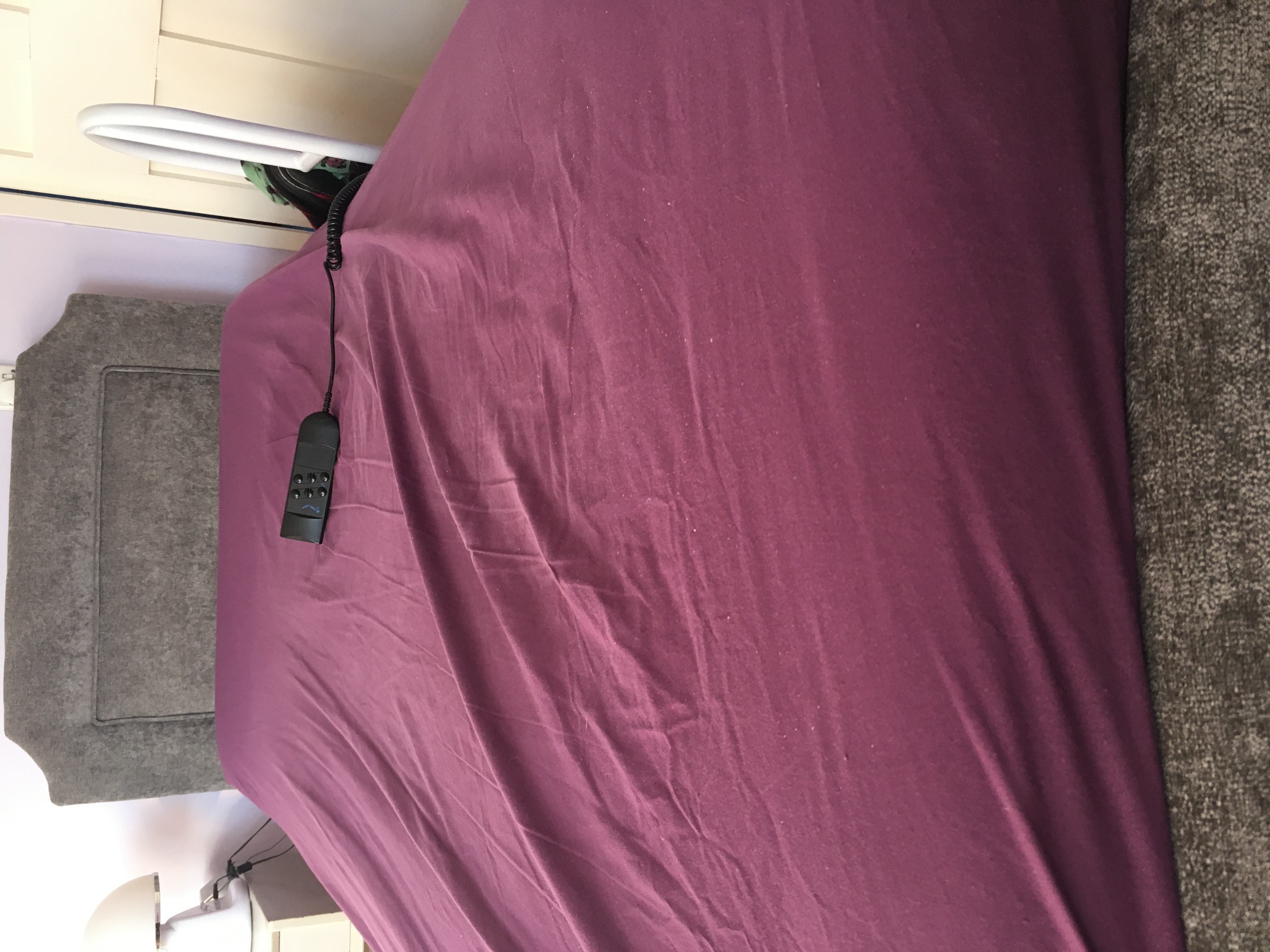 Electric bed, both foot and head move, with a controller on a cable. It's a divan. The mattress and bedding are not included.