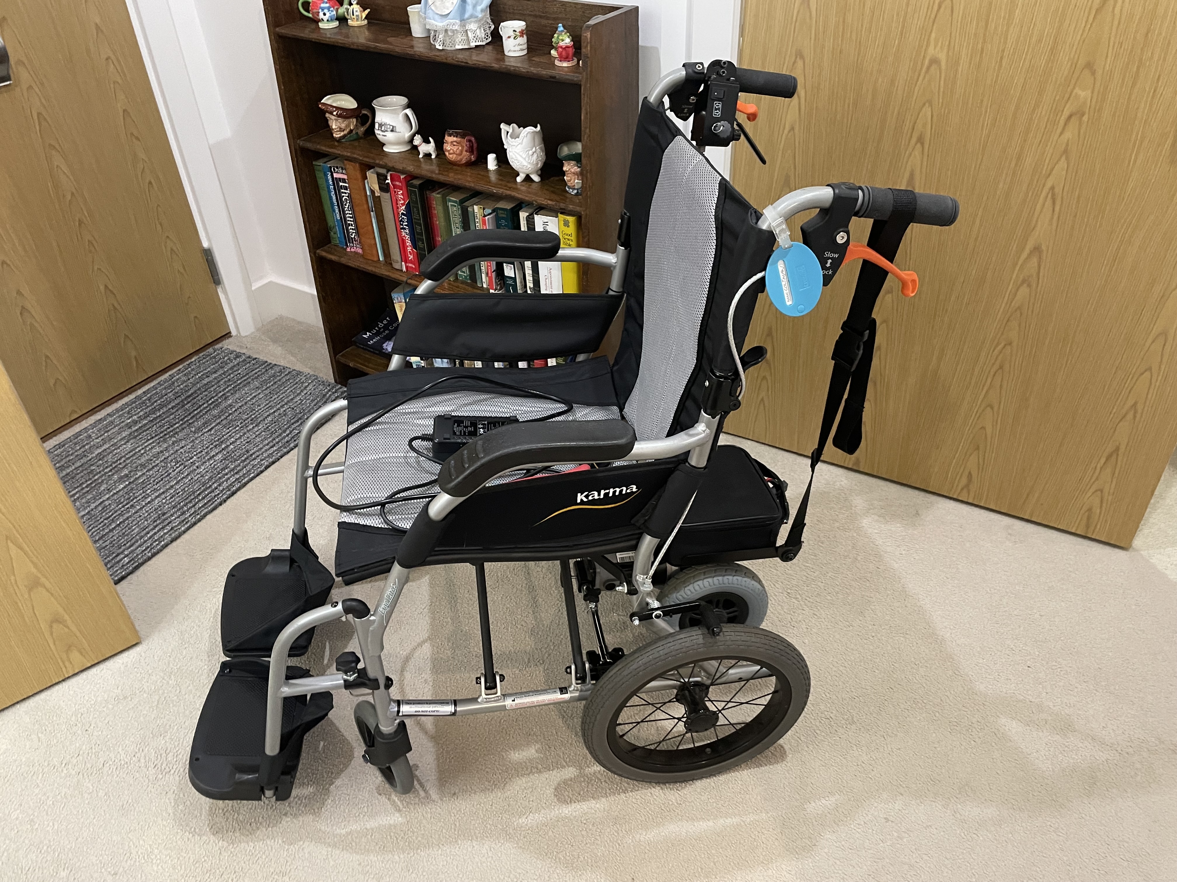 Karma battery powered wheelchair. 2 years old. Battery pack easily removable. In good condition. |