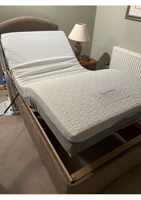 A Brand new, never used, 'Healthbed,' fully adjustable, profiling, with temperature isolating, 'Cooltex Support' mattress. Remote control and a brand-new bed rail included.