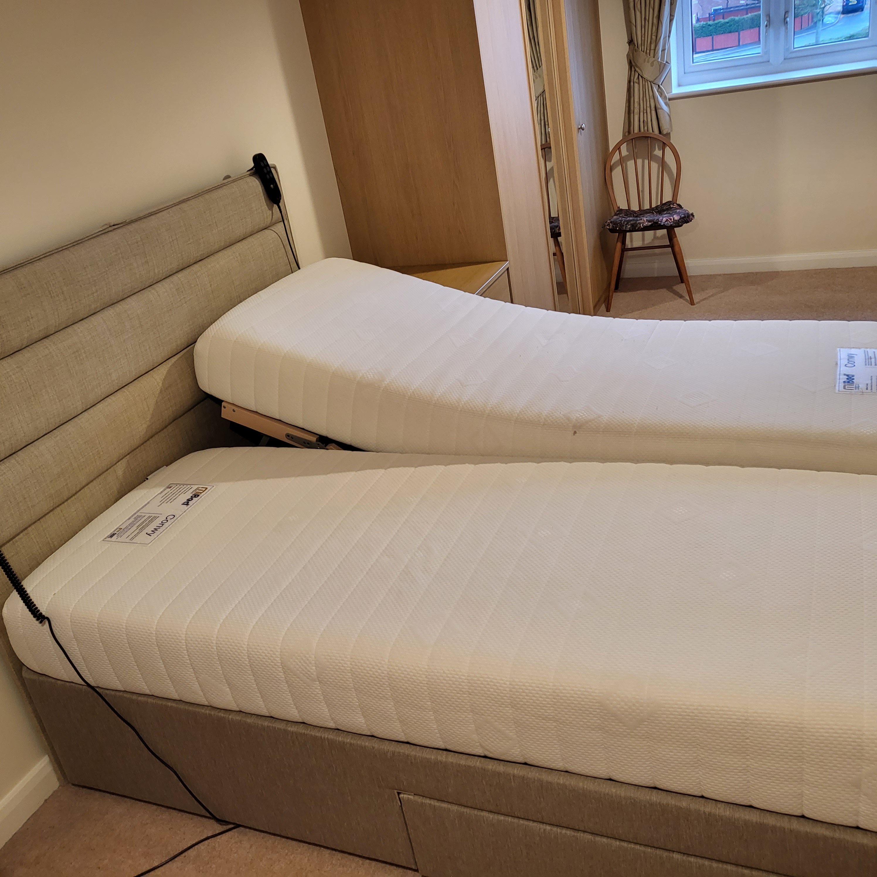 | Description: | Adjustable bed, each side independently adjustable. Bed surround with storage drawers and headboard. Tempur mattresses. 18 months old, very good condition. | ||