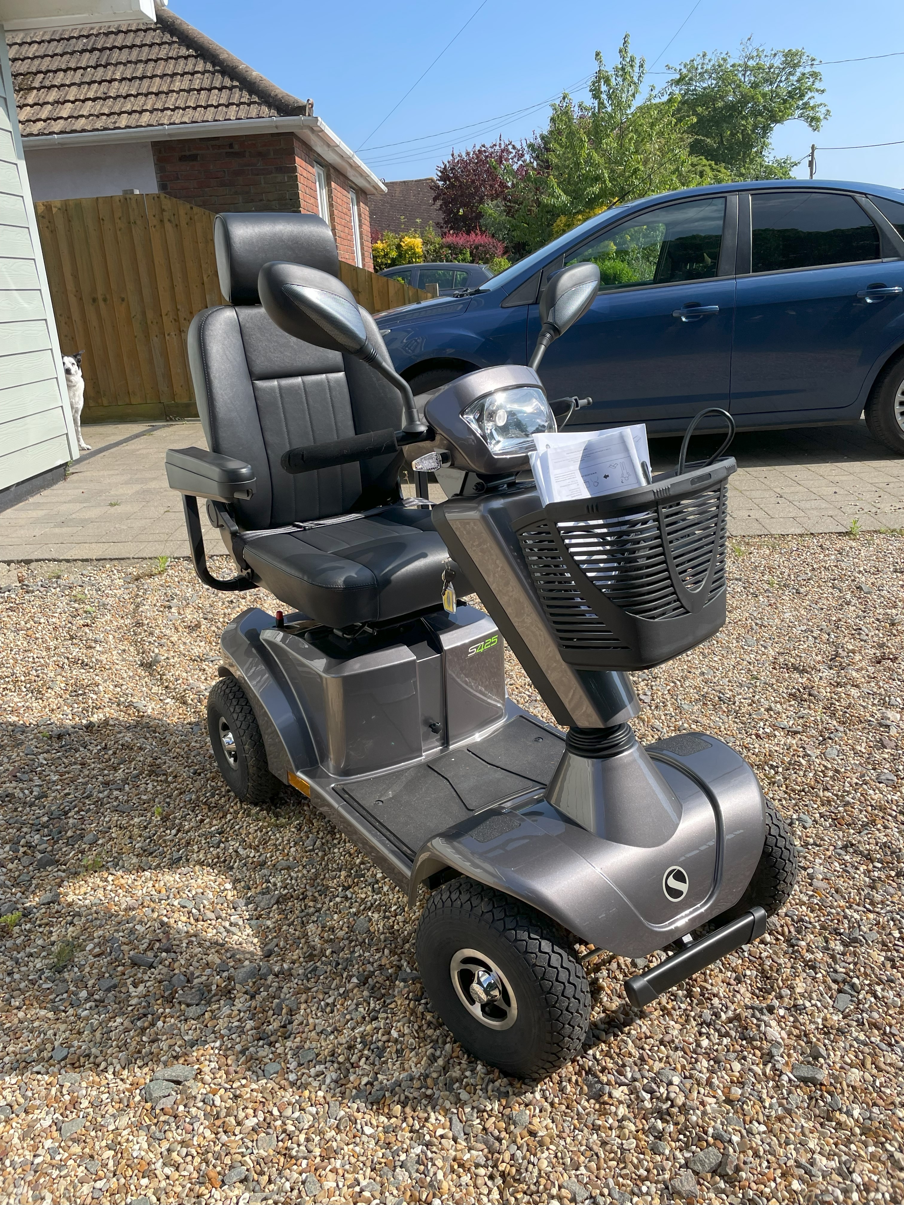| Description: | This is a brand new machine. It was bought for my Father who sadly passed away before he could use it. It has been driven about 100mtrs down the road. The Sterling S425 road scooter is easy to drive, reliable and environmentally friendly, and proves to be a very popular choice in our road scooter range. With a sleek and compact design, it is packed full of features, so you will not be disappointed with what this scooter has to offer. The S425 features all-around great suspension, ensuring a smooth and steady ride, along with a 42km maximum range that makes this scooter ideal for day trips out. It also comes featured with innovative active anti-tip wheels which move up as you ride over obstacles and additionally keep you safe on slopes. Comfort is essential for the S425, with an adjustable higher back design which is ideal for the taller person. The seat is padded and the armrests provide a comfortable resting place, providing maximum comfort. This model also features an advanced gas strut assisted tiller for easy adjustment and a wig-wag finger thumb control for comfortable natural driving. There are waterproof soft-touch controls that feature easy to use speed adjustment, LED battery gauge and a powerful horn. The S425 mobility scooter is 400 times more energy efficient than the standard scooter due to its LED lighting, making it very environmentally friendly. |